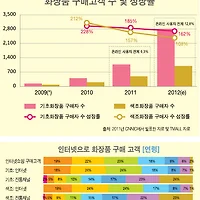 타오바오에서 판매되는 한국 화장품 매출액을 한번 살펴보자. 기초화장품과 색조화장품으로 구분하여 보면, 아래의 표와 같으며 이 수치에는 taobao.com과 tmall.com의 수치가 합산되어 있다.
